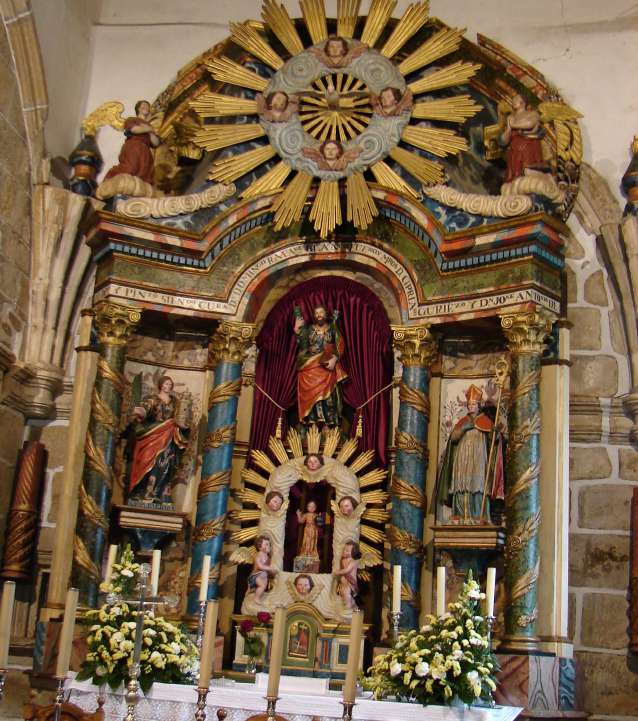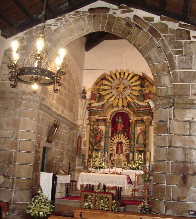 Destacan o altar maior -que conta coas imaxes de Santo André, Santa Bárbara e san Brais–  de estilo neoclásico tardío e o retablo pétreo da Virxe do Carme, obra do artista de Sandrexo Francisco Castro Agudín, que aínda conserva algunha traza barroca pero que predominantemente é neoclásico.