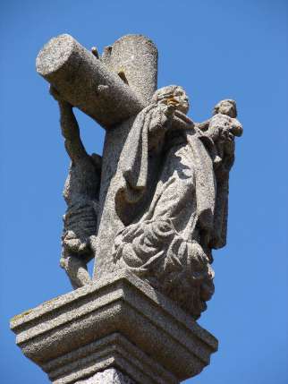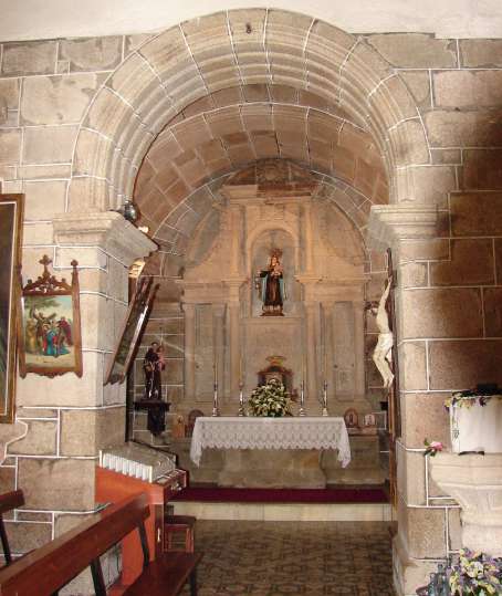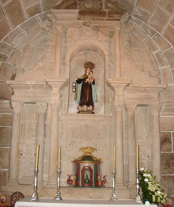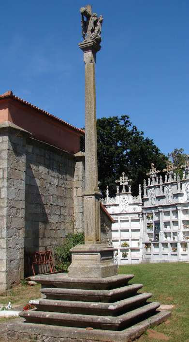 Na zona sueste do adro hai un cruceiro de fermosas trazas contando coas figuras do Cristo e a Virxe do Carme co neno no colo; as figuras foron esculpidas por Francisco Rodeiro, escultor compostelán, en 1857.