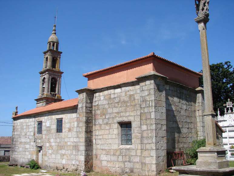 A igrexa parroquial, de 1540, sufriu reformas en 1618  -baixo a dirección de Jácome Férnandez, mestre de obras da catedral de Santiago- e tamén en 1791, 1815, 1838, 1848 e 1987. O campanario data de 1893. Presenta planta de salón formada por unha capela maior cuadrangular e unha nave rectangular. Foi mandada edificar polo nobre Álvaro Núñez de Lamas e conserva os sepulcros pétreos tanto del como da súa nai.